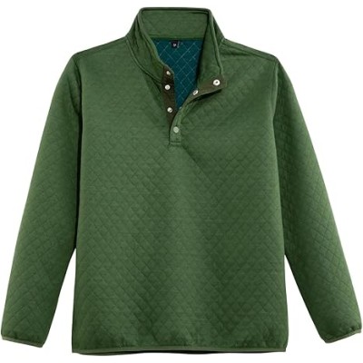 Men's Ultra Soft Quilted 1/4 Snap Fleece Pullover Sweatshirt Jacket Long Sleeve Mountain Outdoor Shirt
