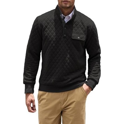 Mens Quilted Sweatshirt Long Sleeve Casual Stand Collar Quarter Button Pullover Sweatshirts for Men