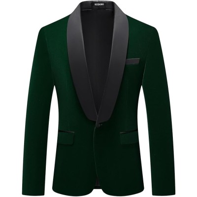 Mens Velvet Blazer Slim Fit Tuxedo Suits Jacket Shawl Collar Solid Jacket Wedding Dinner Prom One Button Blazer Jacket