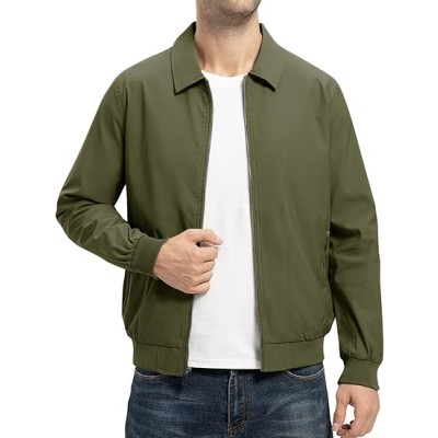 Men's Jacket Lightweight Bomber Jacket Casual Windbreaker Jackets Windproof Zip Up Coats with 5 Pockets