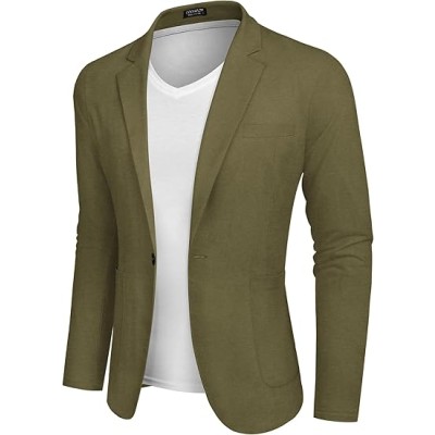 Men's Casual Linen Blazer Lightweight Regular Fit Sport Coat One Button Suit Jacket