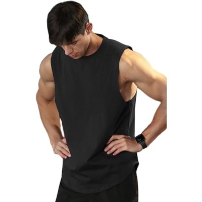 Men's Tank Tops Cotton Sleeveless Muscle Shirts for Workout Running Athletic Gym Lounge Casual, Breathable