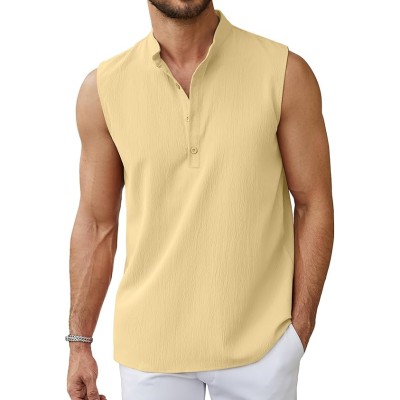 Sleeveless Beach Shirts for Men Summer Casual Tank Top Button Down Henley T-Shirts