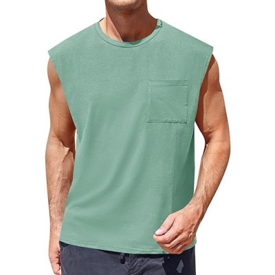 Mens Sleeveless Tank Tops Workout Cut Off Shirts Muscle Gym T Shirts with Pocket