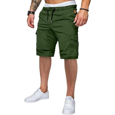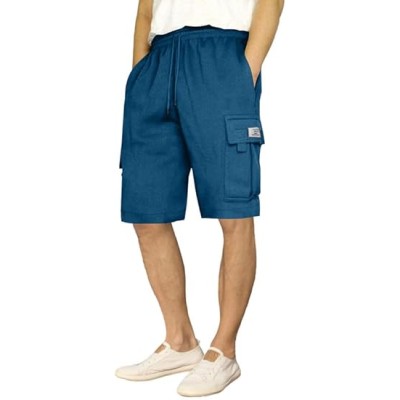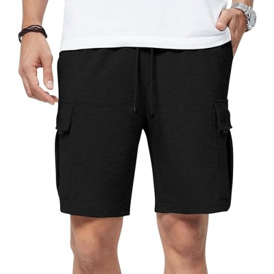 Mens Casual Sweat Cargo Cotton Shorts Drawstring Elastic Waist Athletic Workout Gym Jogger Shorts with 5 Pockets