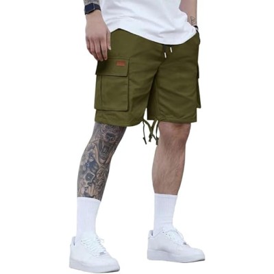 Mens Drawstring Multi Pocket Cargo Short Outdoor Hiking Relaxed Fit Chino Short