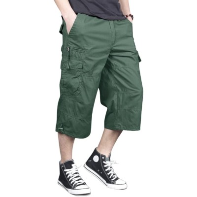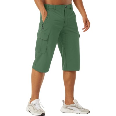 Men's Capri Long Elastic Cargo Shorts below Knee Shorts 3/4 Cotton Cargo Casual Shorts with Multi-Pockets