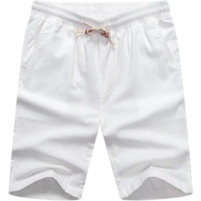 Men's Casual Cotton Elastic Waist Drawstring Linen Shorts Summer Beach Lightweight Shorts
