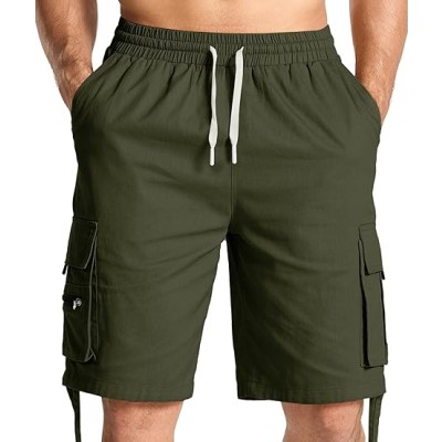 Mens Casual Cargo Shorts Cotton Linen Shorts Drawstring Classic Cargo Stretch Short