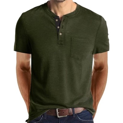 Mens Casual Short Sleeve Henley Shirts Fashion Button T Shirts with Pocket