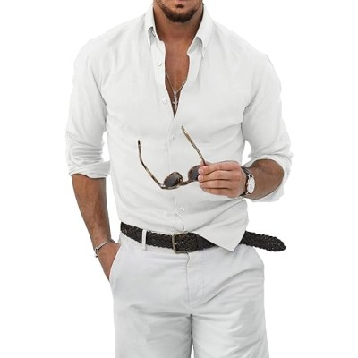 Men's Cotton Linen Button Down Shirt Casual Stylish Long Sleeve Business Dress Shirts