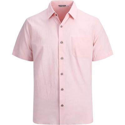Mens Linen Cotton Shirts Short Sleeve Casual Beach Shirts for Men