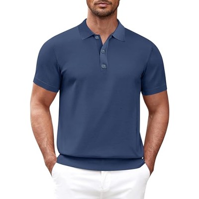 Mens Knit Polo Shirts Casual Short Sleeve Classic Basic Button Down Golf Shirts