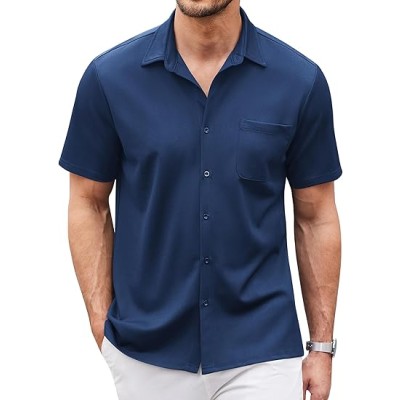 Men's Casual Button Down Shirts Short Sleeve Regular Fit Untucked Dress Shirts Knit Textured