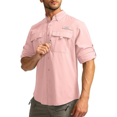 Men's Sun Protection Fishing Shirts Long Sleeve Travel Work Shirts for Men UPF50+ Button Down Shirts with Zipper Pockets