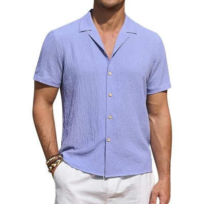 Men's Button Down Shirts Textured Short Sleeve Casual Summer Hawaiian Beach Shirt with Pocket