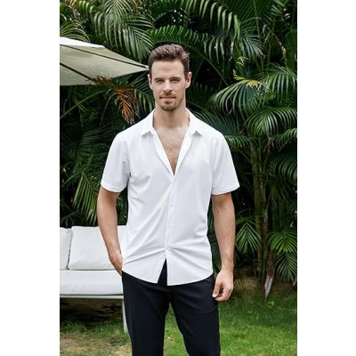 Mens Dress Shirt Wrinkle Free Moisture Wicking 4-Way High Stretch Super Soft Casual Button Down Shirts